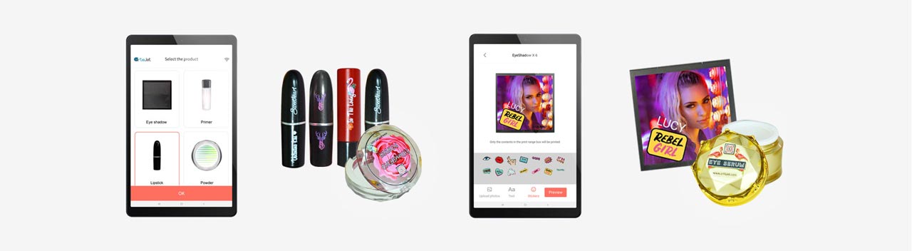 Direct to media and substrate print solution is exactly what you can expect from our solution and your image can be directly printed to substrates of your choice. The substrates could be lipstick case, eyeshadow case, luggage tags, name badges cards, mobile covers, wood photo blocks, and anything you can think of. In many cases, the print solution is called lipstick case engraver or 3D lipstick case printer! These names originate from the printing results of being embossed / textured, that is to say, the printing is tactile, and you can touch the name and pictures directly with your fingers!